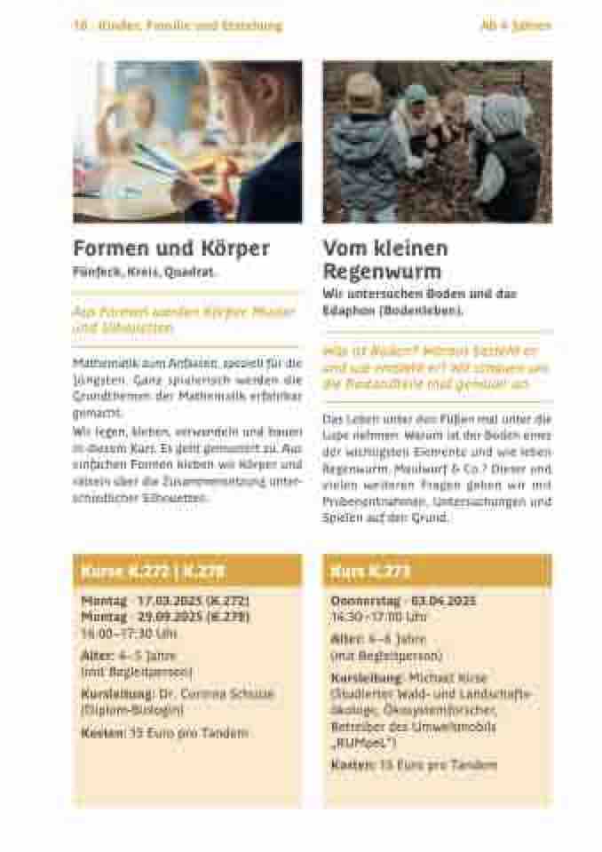 Das Leben unter den Füßen mal unter die Lupe nehmen: Warum ist der Boden eines der wichtigsten Elemente und wie leben Regenwurm, Maulwurf & Co.? Dieser und vielen weiteren Fragen gehen wir mit Probenentnahmen, Untersuchungen und Spielen auf den Grund.