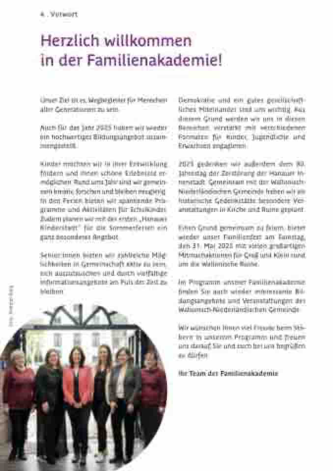 Im Programm unserer Familienakademie finden Sie auch wieder interessante Bil- dungsangebote und Veranstaltungen der Wallonisch-Niederländischen Gemeinde.