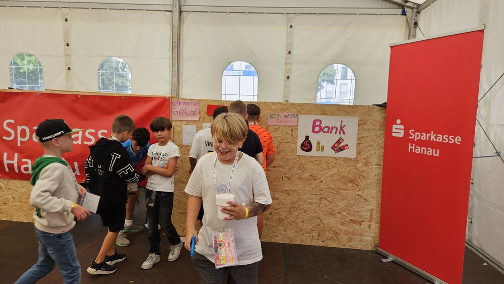 Gegen eine freiwillige Spende erhalten Sie beim Abschlussfest Geld in der Kinderstadt-Währung „Hanauer Schwäne“, mit denen Sie in der Stadt einkaufen können.